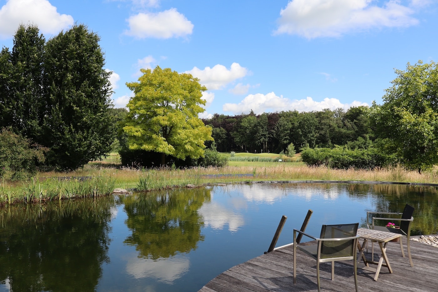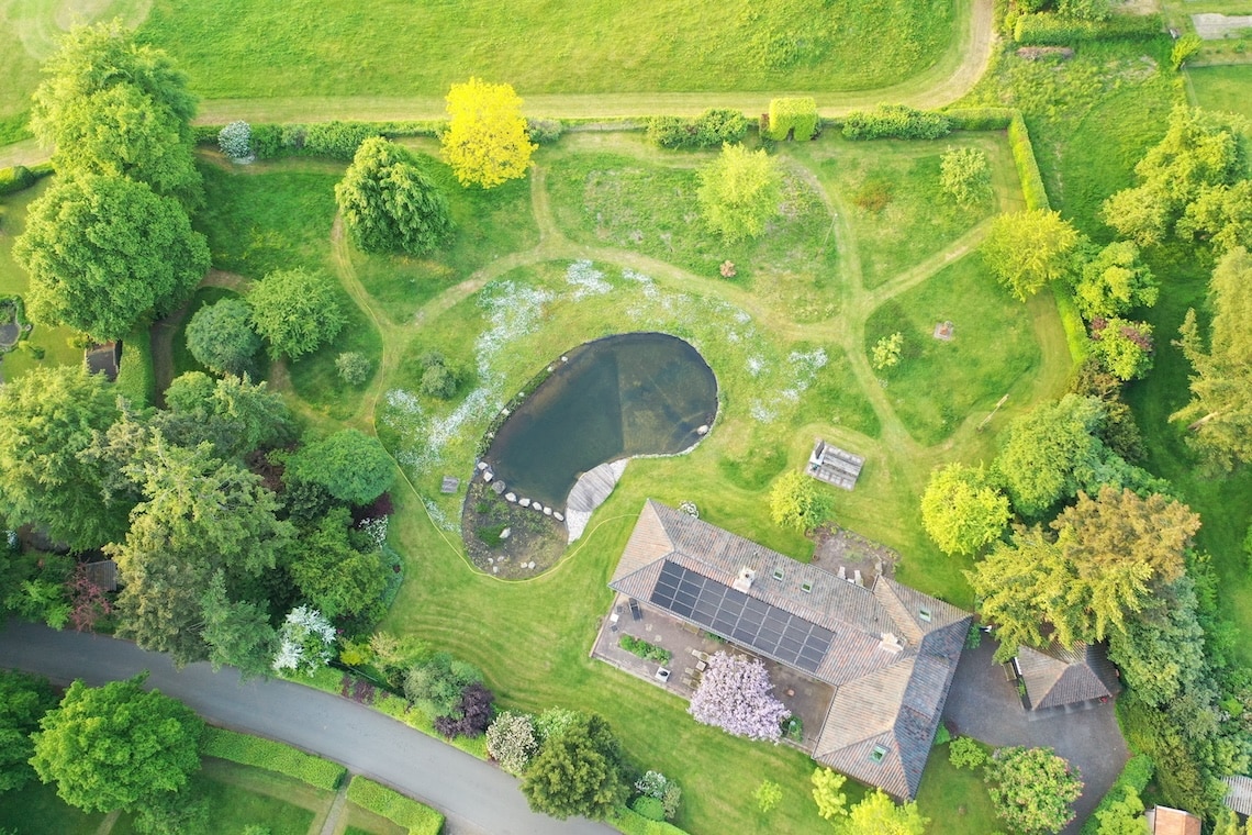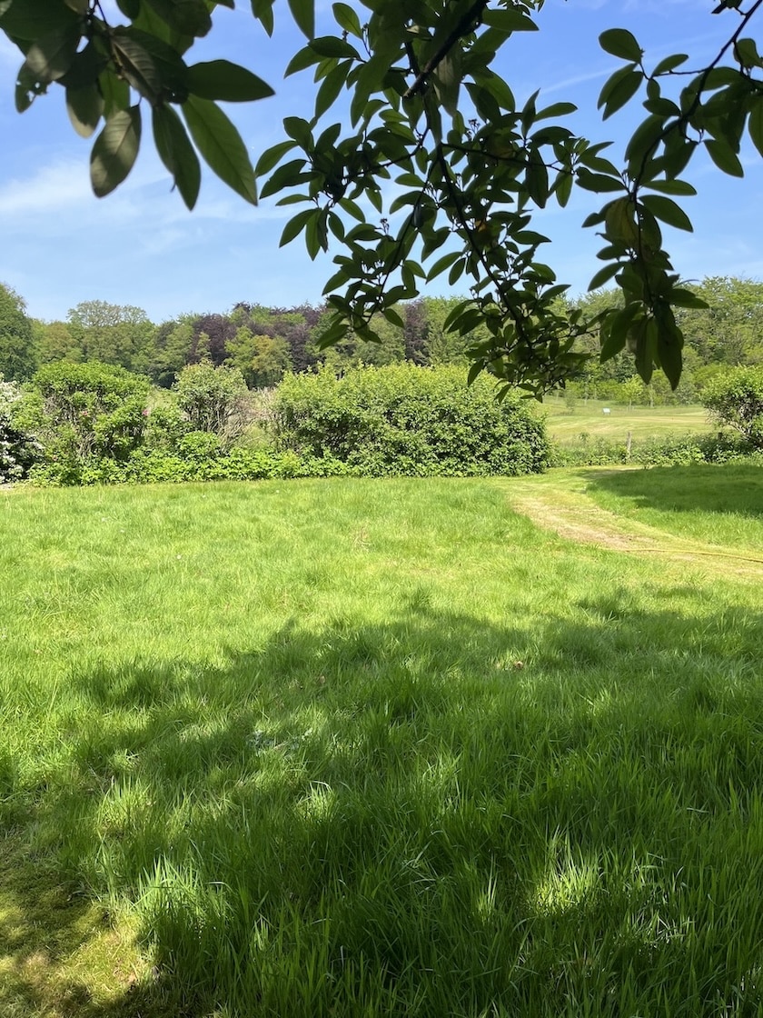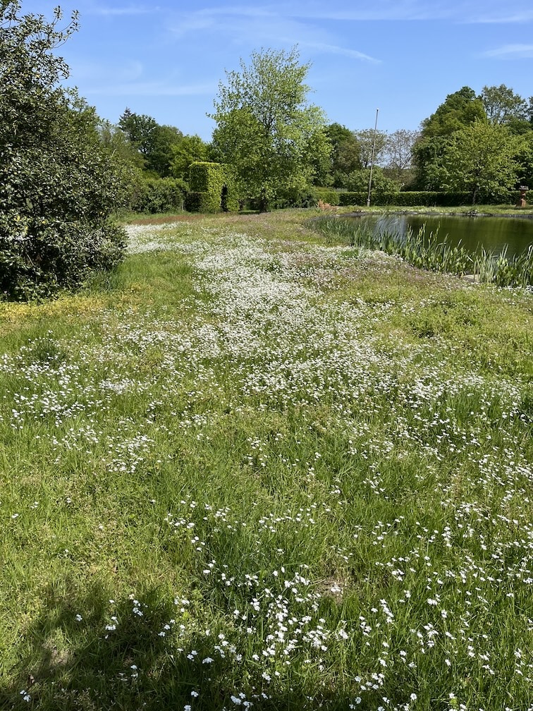 Met een subtiele ingreep heb ik de tuin en het omliggende landschap met elkaar verbonden. De tuin lijkt daardoor zo groot als je oog kan waarnemen. Het voormalig grasveld is ingezaaid met kruiden en er zijn paden doorheen gemaaid. Precies zoals in het omliggende landschap.